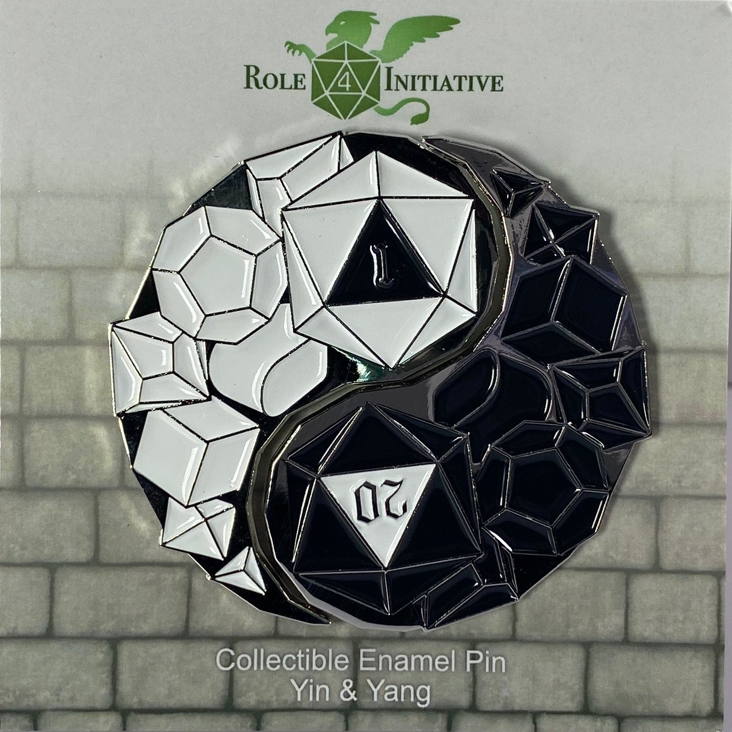 This pair of matching enamel pins are each in the shape of a Yin and Yang symbol made up of dice shapes. Wear them separately, or wear them together, with the 1 or the 20 upside right to match your mood. All seasoned dice rollers know there will be good rolls, and there will be bad rolls - but the dark and light together create a beautiful balance, and that's what makes this pair so exciting!